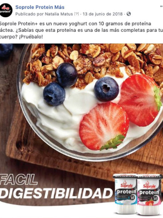 Soprole aprovechó la escasa oferta y poca presencia comunicacional en el segmento de yogurts con proteínas para desarrollarlo con una línea de productos altos en proteínas y masivos.