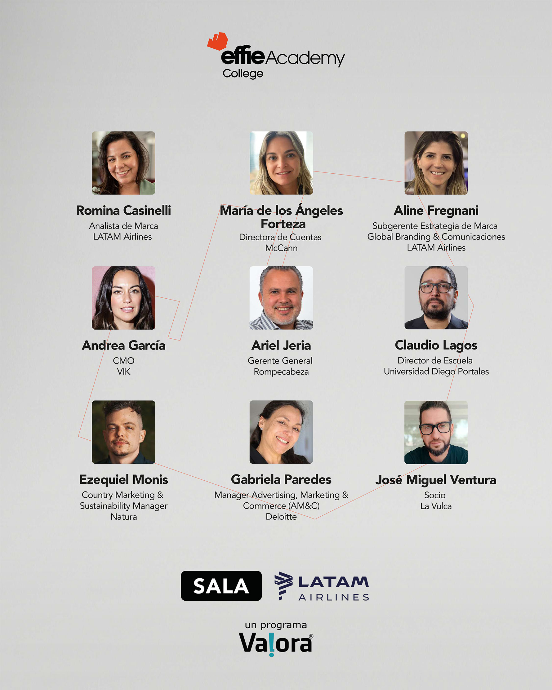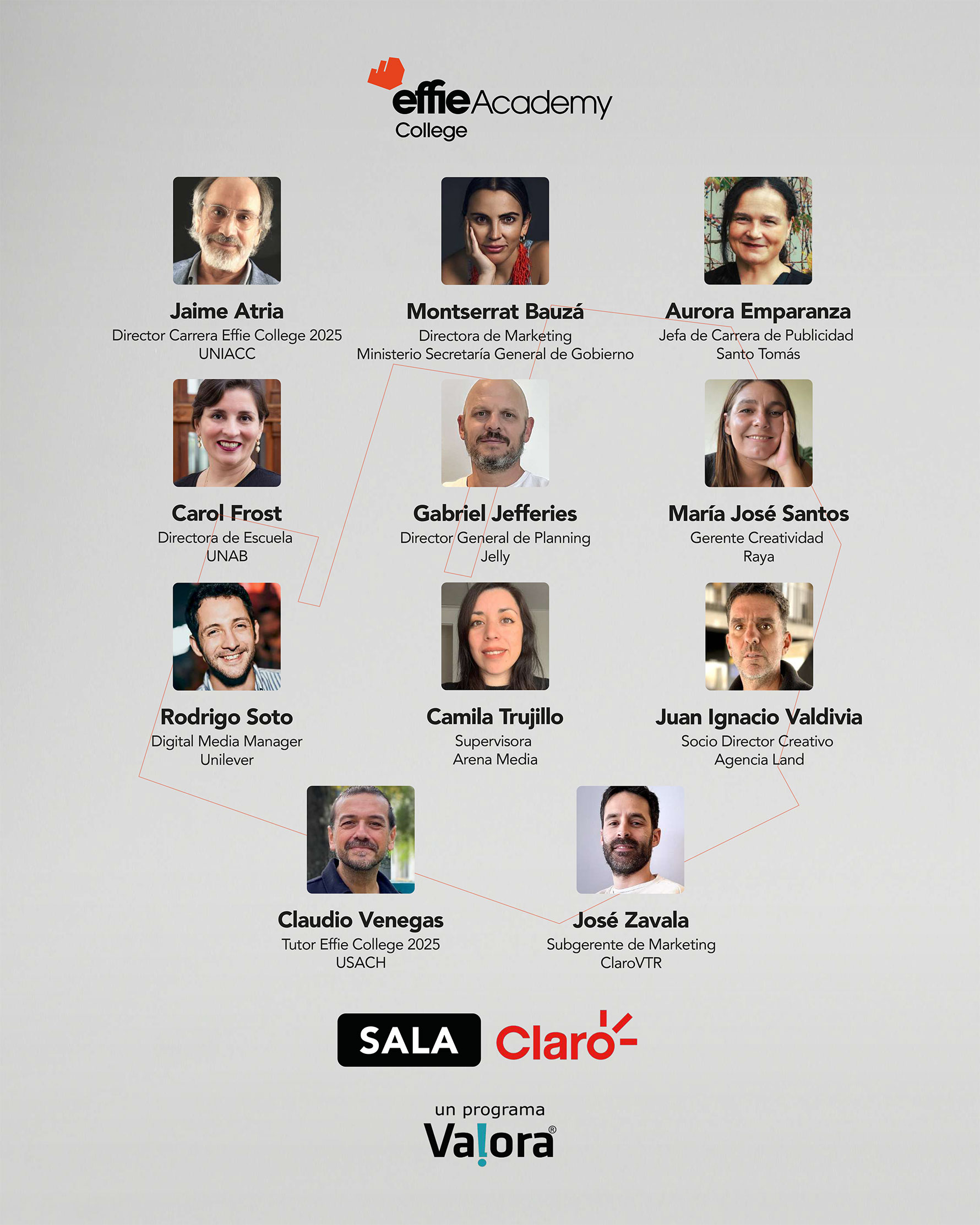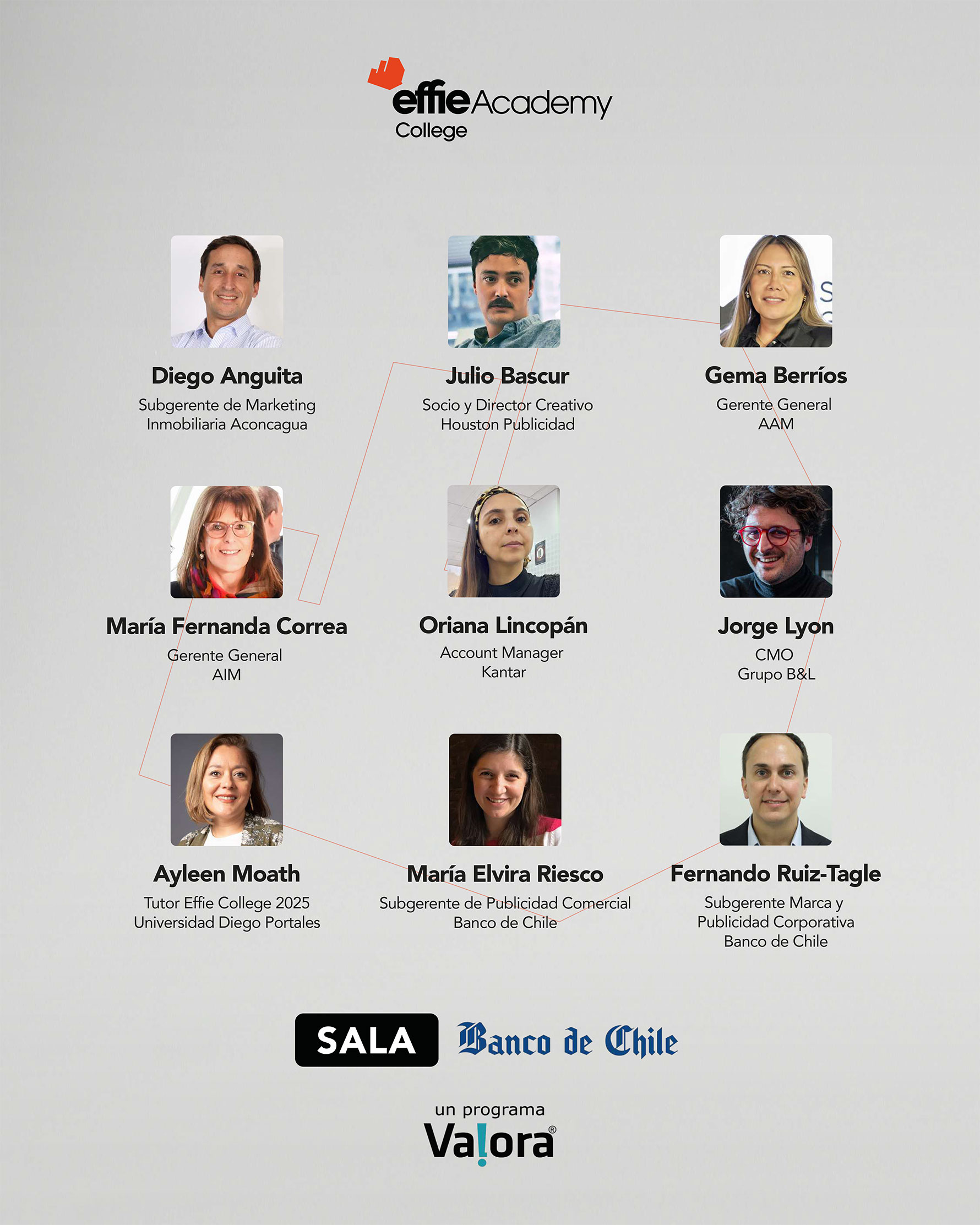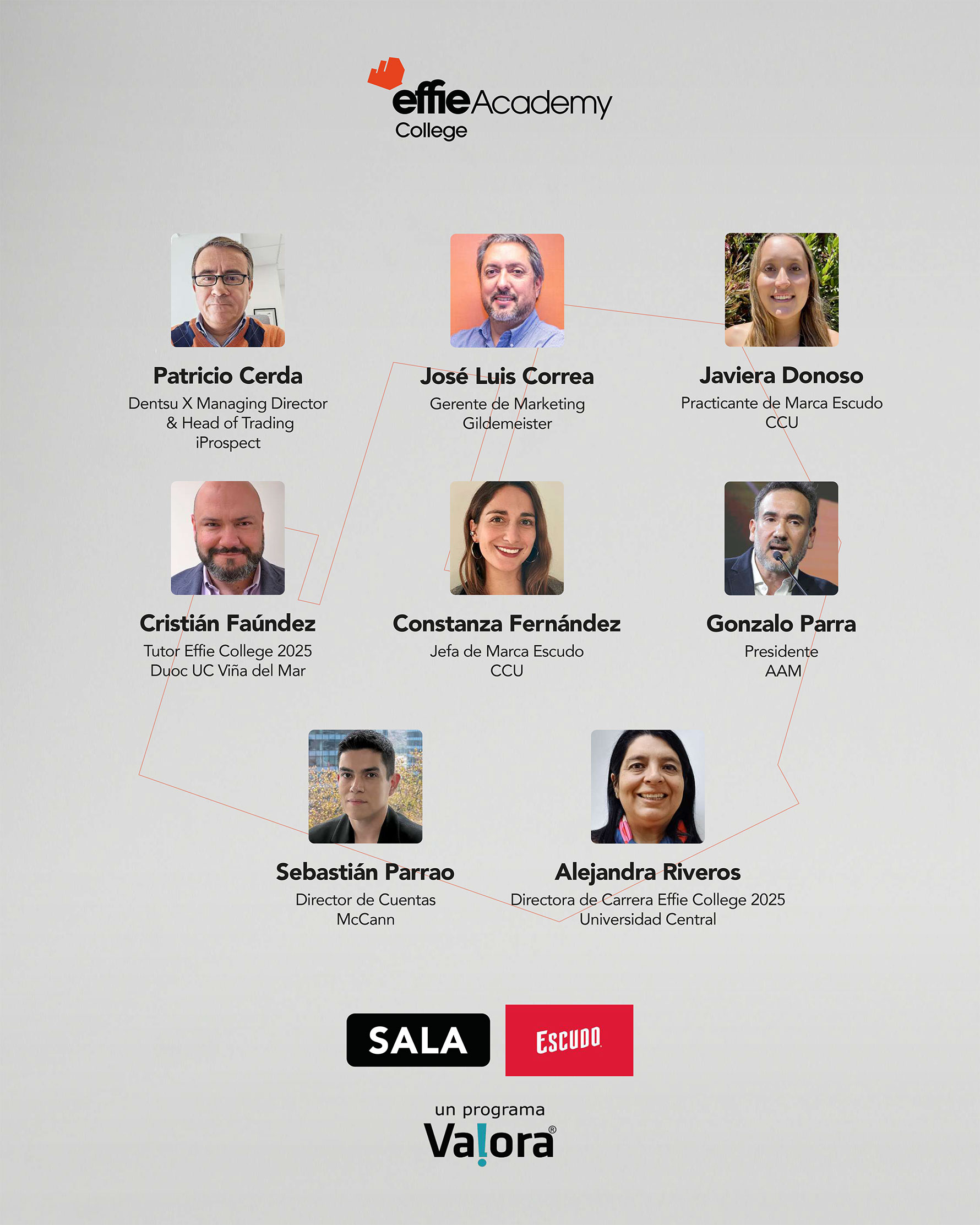 *Cada Jurado está representado según el cargo y empresa en la que se desempeñaba al momento de participar de la Sesión de Jurado de Effie College 2025.